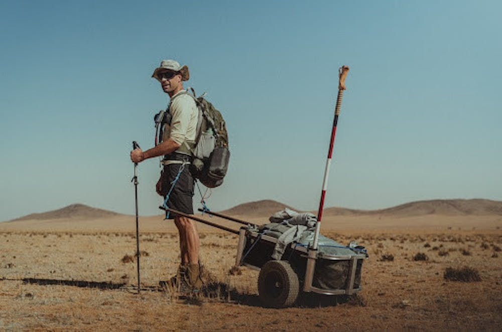 George Leader walking in the Namib Desert. (Photo courtesy of George Leader)